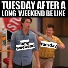 This meme illustrates how difficult Tuesdays can be at work while feeling like a weekend is required already before the week even gets rolling.
