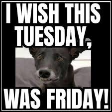 A meme that highlights the common feeling of wishing time away as it turns to Tuesday.